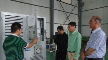 國外友人來我公司考察,公司領導及市場部人員陪同客戶參觀了公司車間,并詳細講解了公司生產的七電平中壓變頻裝置、油井動態(tài)節(jié)能裝置等產品的生產工藝流程……